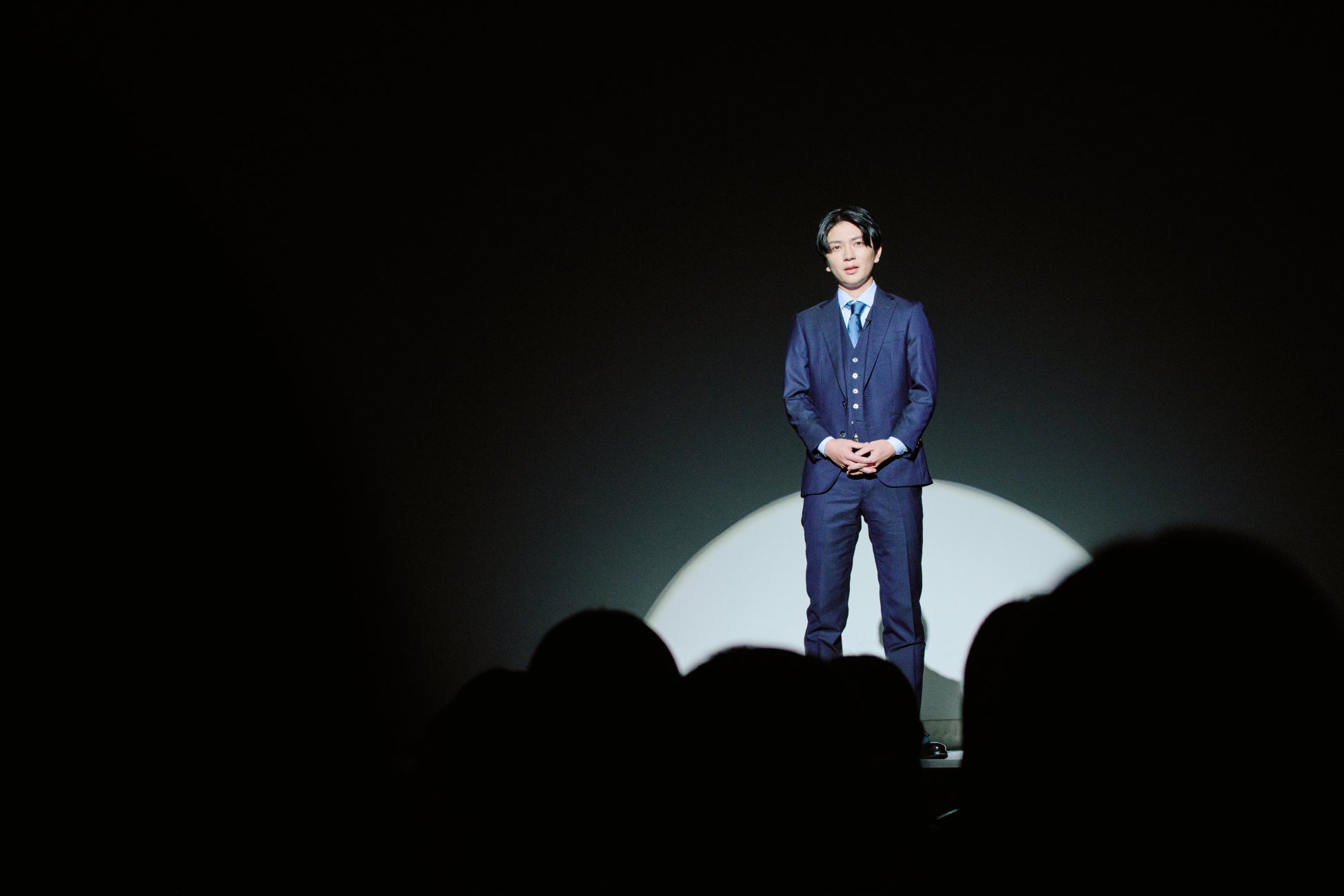 ムービーの終了後、暗転したステージに当社CEO髙橋が登場。久々の公の場での登壇に、会場の視線が集まりました。