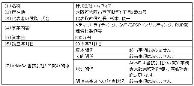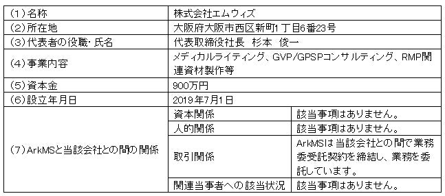 当社の子会社であるArkMS株式会社(アークメディカルソリューションズ、本社:東京都豊島区、代表取締役社長:水尾斉、以下「ArkMS」)は、株式会社エムウィズ(本社:大阪府大阪市、代表取締役社長:杉本俊一、以下「エムウィズ」)と、医薬品および医療機器の安全性関連サポート業務とその営業活動に関する業務提携基本契約を締結しましたので、下記のとおりお知らせいたします。