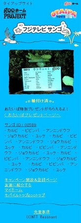 配布します。そして、これらからSNS「gooホーム」内「フジテレビサンゴ」