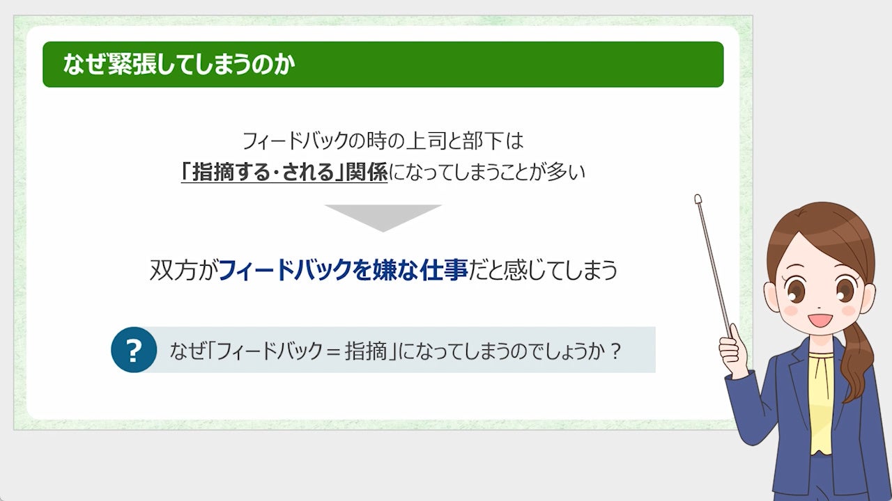 行動を振り返る「フィードバック」は、後輩や部下を指導する場面で不可欠です。しかし、うまくできなかった際、本人は問題点やその原因をすでに理解していることが多いものです。「フィードフォワード」は、指摘や原因追及に重点を置いて追い詰めることはせず、「解決策」にフォーカスする新しい人材育成の手法です。未来に向けた前向きなアドバイスや、個々の主体性を尊重するコメントを伝える方法を学びます。(標準学習時間:0.5時間)