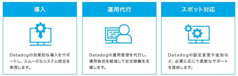 「導入・運用支援 for Datadog」は、Datadogの導入から日々の運用までを一貫してサポートするサービスです。Datadogの初期設定や監視環境の最適化、アラートの調整、ダッシュボードの作成など、効果的な運用に必要な支援を提供します。企業がDatadogを最大限に活用できるよう専門エンジニアがサポートします。
