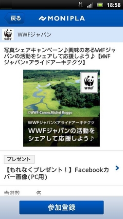 名称 :あなたが興味のあるWWFジャパンの活動をシェアして応援しよう♪Facebookキャンペーン
