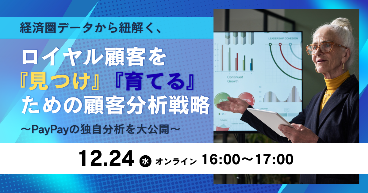 12/24(水) MMDセミナー「経済圏データから紐解く、ロイヤル顧客を『見つけ』『育てる』ための顧客分析戦略 ~PayPayの独自分析を大公開~」