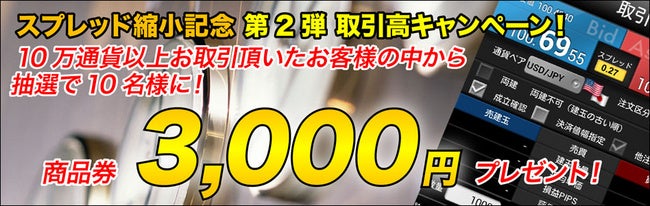 スプレッド縮小記念 第2弾 取引高キャンペーン!
