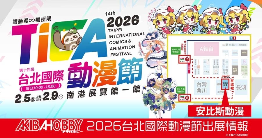 AKIBAHOBBY將會參加於2026年2月5日~2月9日在台北南港展覽館一館舉辦的[第14屆台北國際動漫節]