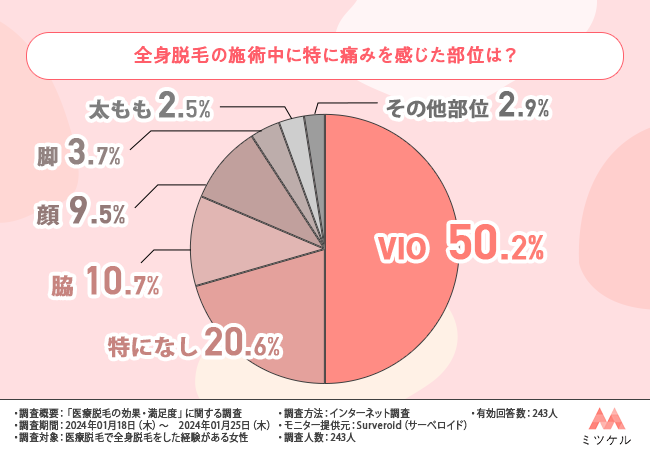調査した結果、「VIOエリアが特に痛みを感じた」という方が多いことが分かりました。