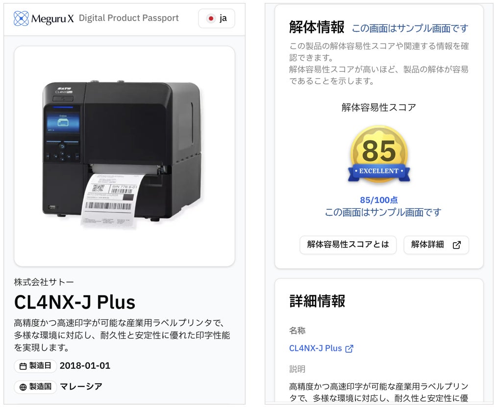DPPにはラベルプリンターの解体に必要な情報を組み込み、リサイクル現場で情報を活用
