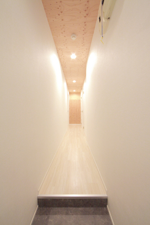 ■コンセプト文 木とコンクリート。自然と人工物という正反対の素材が融合したお部屋です。全体的に彩度を落とした空間にRCの天井の組み合わせが、クールで冷たい雰囲気が漂うのではないかと思われるかもしれませんが、アクセントに自然の木をあしらうことで、どこかぬくもりのある落ち着いた空間を演出しています。木以外の色をなくすことで木の優しい色が一層際立ち、ここで過ごす人が優しい気持ちになれる、そんなお部屋です。