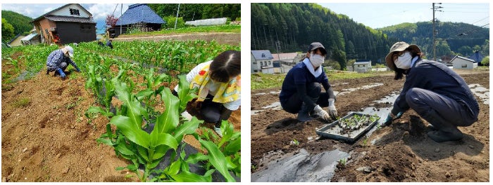 ホテルタングラム「もろこし村」での収穫体験の様子
