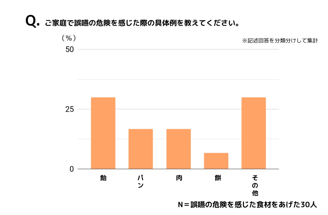 1.家庭で誤嚥の危険性感じたことがある親45.93%、危険を感じた食材『飴』の事例が一番多い結果に