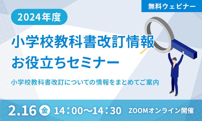 株式会社タオ(本社:滋賀県草津市、代表取締役:⿊澤 慶昭)は、塾や学習教室向けに「2024年度 小学校教科書改訂情報お役立ちセミナー」と題したウェビナーを2/16(金)に開催します。