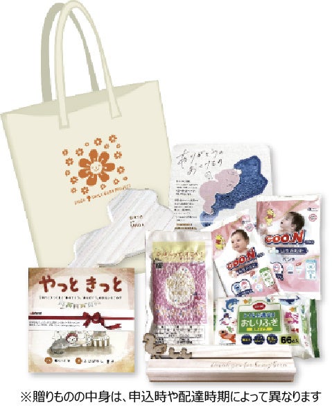 滋賀で生まれたこどもやその御家族へ「おめでとう、ありがとう」の思いをこめて、社会全体で出産・子育てを応援しているというメッセージとともに、県産品や企業からの協賛品を「ありがとうの贈りもの」としてお届けしています。また、こどもを生み育てることは、負担にもまして、「楽しい・毎日が充実している」といった前向きなイメージを持っていただけるようキャンペーンを展開し、社会全体で出産、子育てを応援し、関わっていこうという機運を高めていきます。