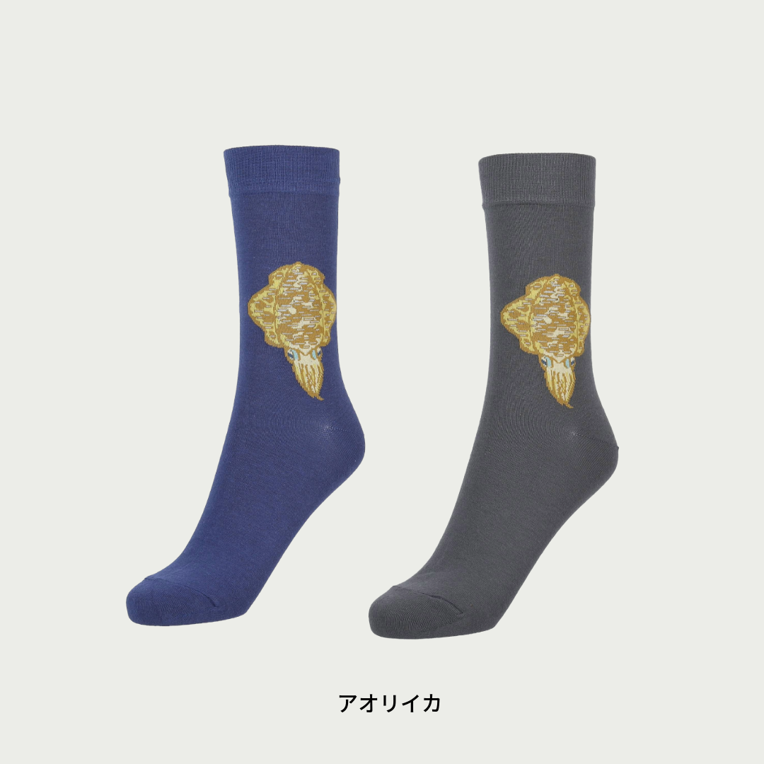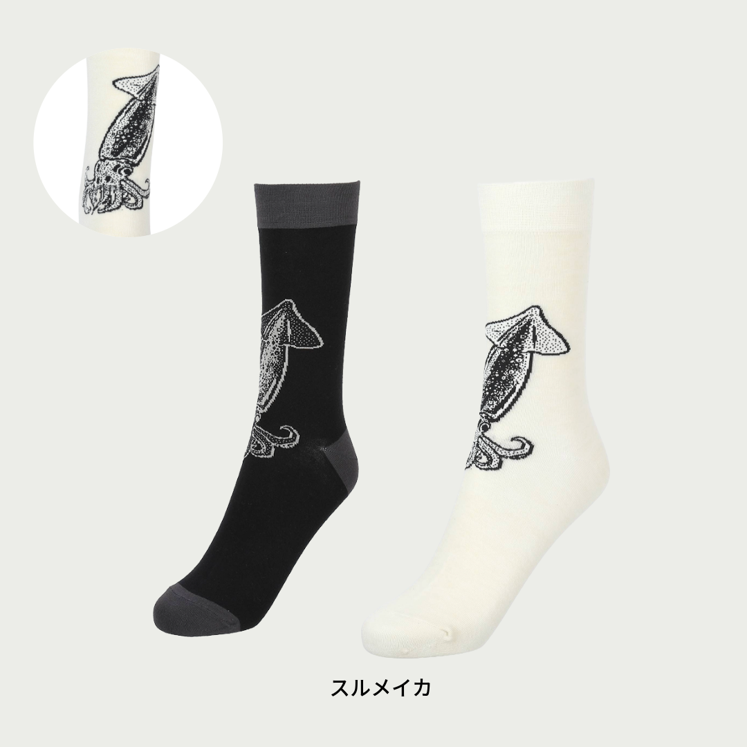 釣り好き魚好きにおすすめのUO-SOCKS第一弾は「アオリイカ」「スルメイカ」「タチウオ」「マダコ」の4種。