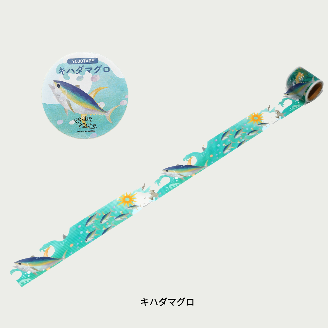 利用用途が多岐にわたる便利なYOJOTAPEは「アカジン」「アオリイカ」「カワハギ」「キハダマグロ」「クロカワカジキ」「マダコ」「シイラ」「タチウオ」「ヤマメ~サクラマス」の9種類!