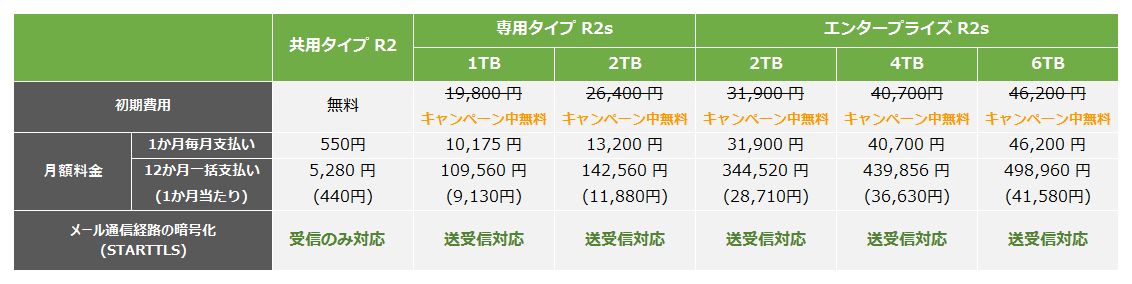 ※ メールプラン 専用タイプ・エンタープライズに関しては、このたびの機能強化で送受信ともに暗号化に対応いたしました。