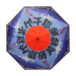 この傘は、傘布全体に施された大胆でモダンな和柄のグラフィックデザインが特徴で、職人の手作業により骨組みに柄を繊細につなぎ合わせ、美しく仕上げられています。和装や洋装に関わらず、折りたたんでも後ろ帯が濡れないよう配慮された大きめの設計を採用し、使い勝手の良さを追求しました。