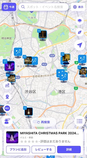 ■周辺の観光スポットやグルメ、その日のイベントや季節情報などリアルタイムに地図に表示