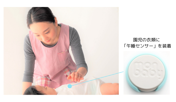 当社が新たに導入する「午睡チェック」は、ユニファ株式会社が開発・提供しているサービスで、園児の衣類に“ボタン式センサー“を取り付け、センサーにより体動を自動検知し、うつ伏せ寝や体動静止状態が続いた場合には、専用アプリがアラートで保育士へお知らせするシステムです。