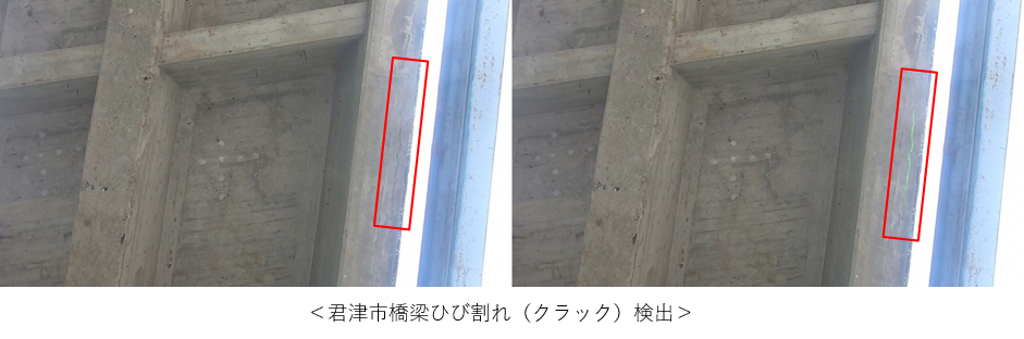 【実際にひび割れ、サビを検出した様子】