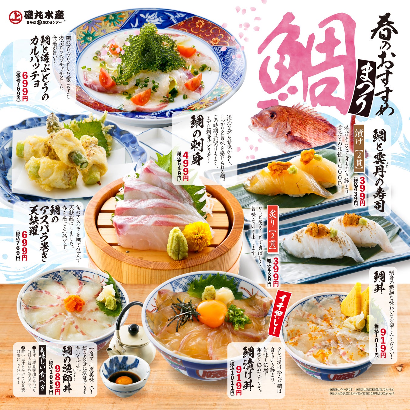 3月13日(月)磯丸水産【春のおすすめ】始まります♬ 今年は鯛まつり!