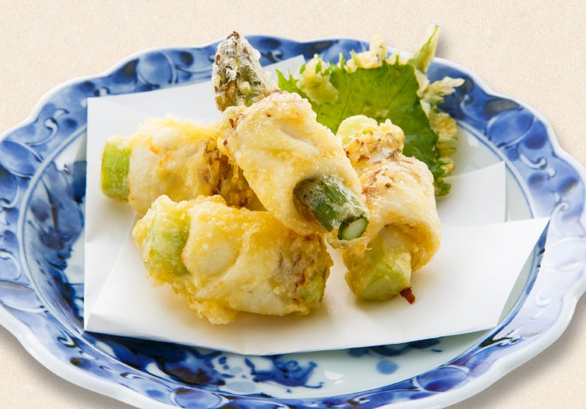 【鯛のアスパラ巻き天麩羅】 699円(税込769円)