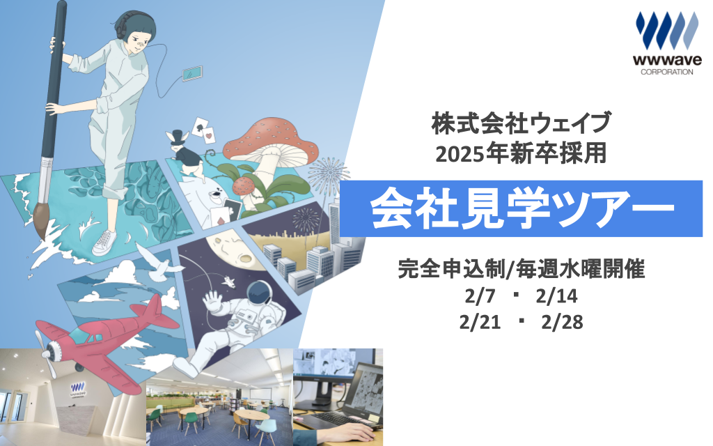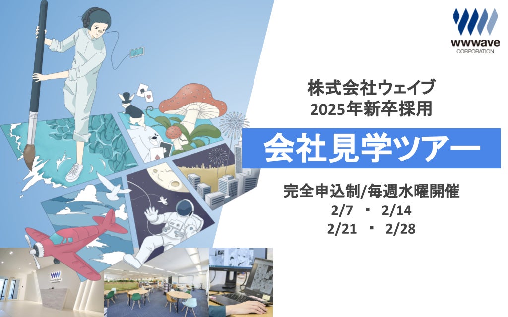 株式会社ウェイブ(本社:東京都豊島区、代表:関口航太)は2024年2月から2025年新卒生に向けた会社見学ツアーを開催いたします。