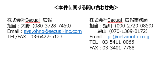 Email:aya.ohno@secual-inc.com 柴山(070-1389-0172)