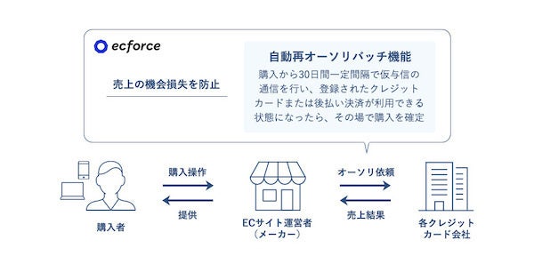 ecforceを導入し特に役立っている機能は、与信落ちなどへの対応を自動化できる「自動再オーソリバッチ機能」です。本来与信落ちのお客様は全て人力でチェックして対応しないといけませんが、ecforceの自動再オーソリバッチ機能を使うと自動でフラグが立ち、与信落ちしたお客様だけに連絡を入れることができます。ecforceは自動化できる機能が多いので、今後売上が拡大しても人的リソースの負荷なくECサイトの運用が可能です。