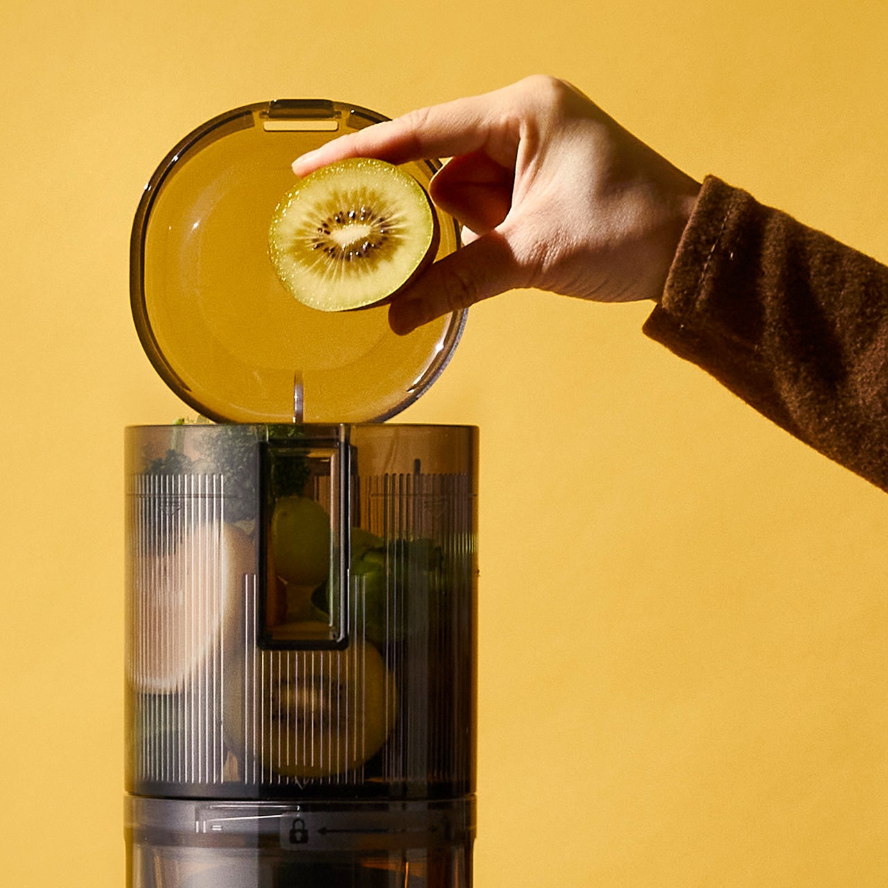 食材を細かく切る必要がなく、上部のホッパーに詰め込むだけで、カットから圧搾・搾汁までのプロセスをすべて自動で行うので、なにかと慌ただしい新生活の朝にもピッタリです。