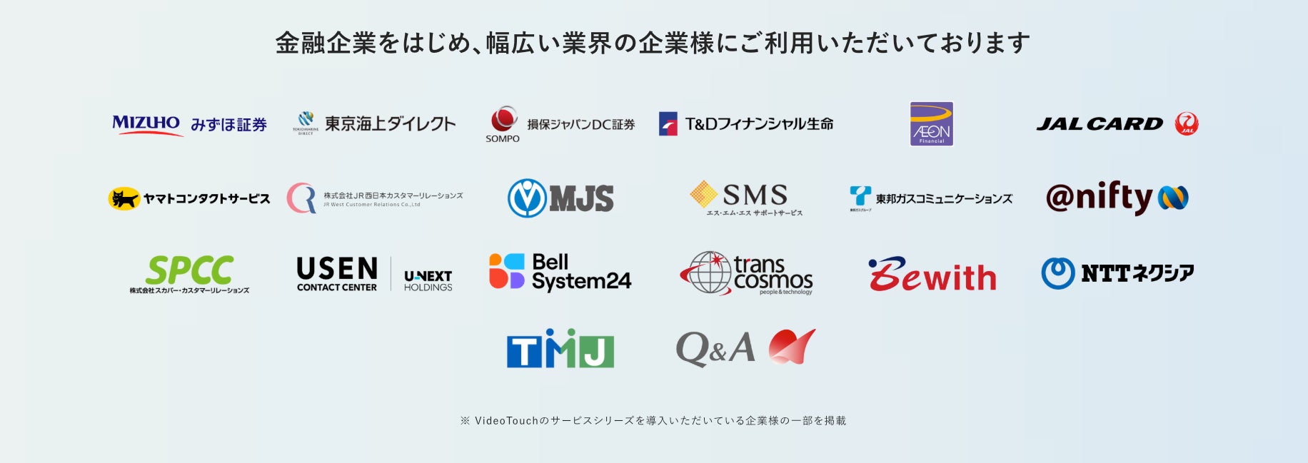 VideoTouchは、人とAIの融合により「コミュニケーションを戦力化」するAI教育プラットフォームです。「学ぶ →鍛える → 測る」のサイクルを一気通貫で実現し、現場のコミュニケーション品質向上と事業成果の創出を支援しています。コンタクトセンターを中心に、大企業から中小企業まで幅広い導入実績を有しています。