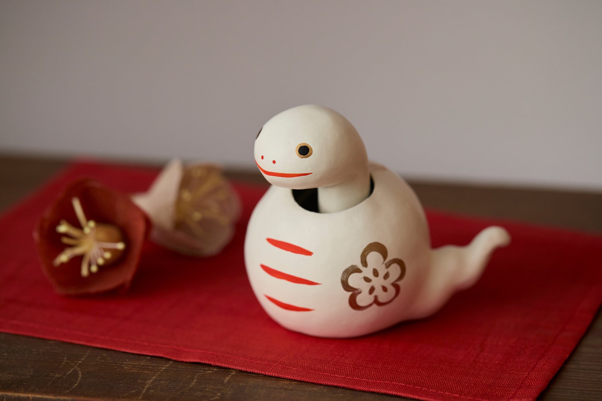 2025年の干支はヘビを表わす「巳(み)」。脱皮を繰り返し強く成長するヘビは、“再生”や“復活”を連想させることから、巳年は新しいことが始まる年になるといわれています。さらに「巳」の音から「身(巳)を守る」「実(巳)を結ぶ」などの願いが込められることもあり、開運をもたらすシンボルとして、人々を災難から守るものともされています。