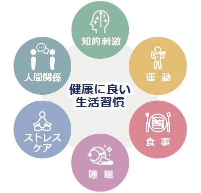 ■睡眠・食事・ストレスケア・運動・知的刺激・人間関係の6領域から作る健康