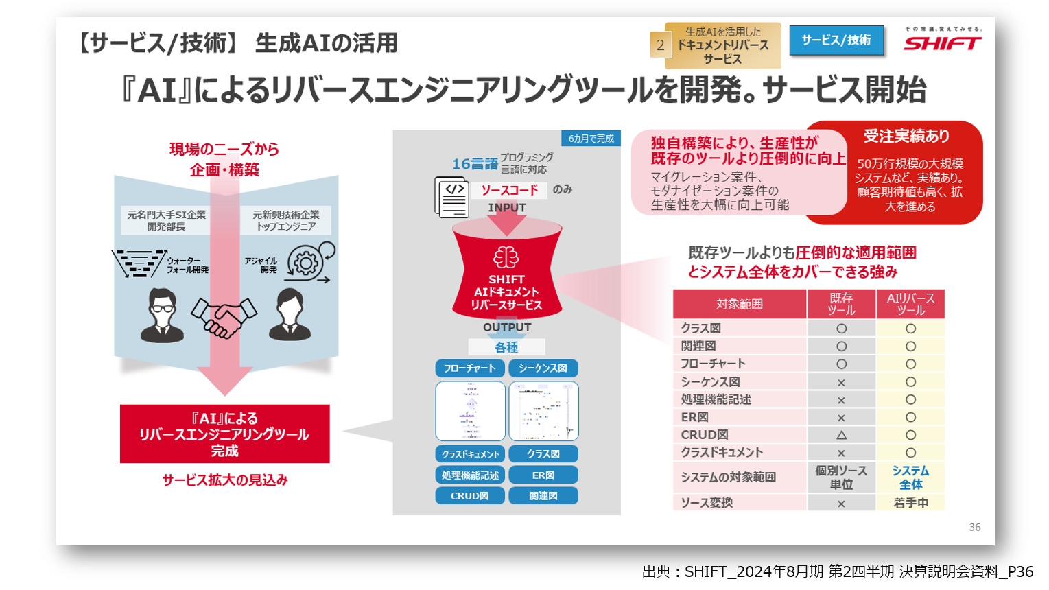 そこでSHIFTは、生成AIの技術を活用した独自のリバースエンジニアリングツールを開発し、自社のマイグレーション支援サービスに本ツールを導入した「AIドキュメントリバースサービス」の提供を開始しました。