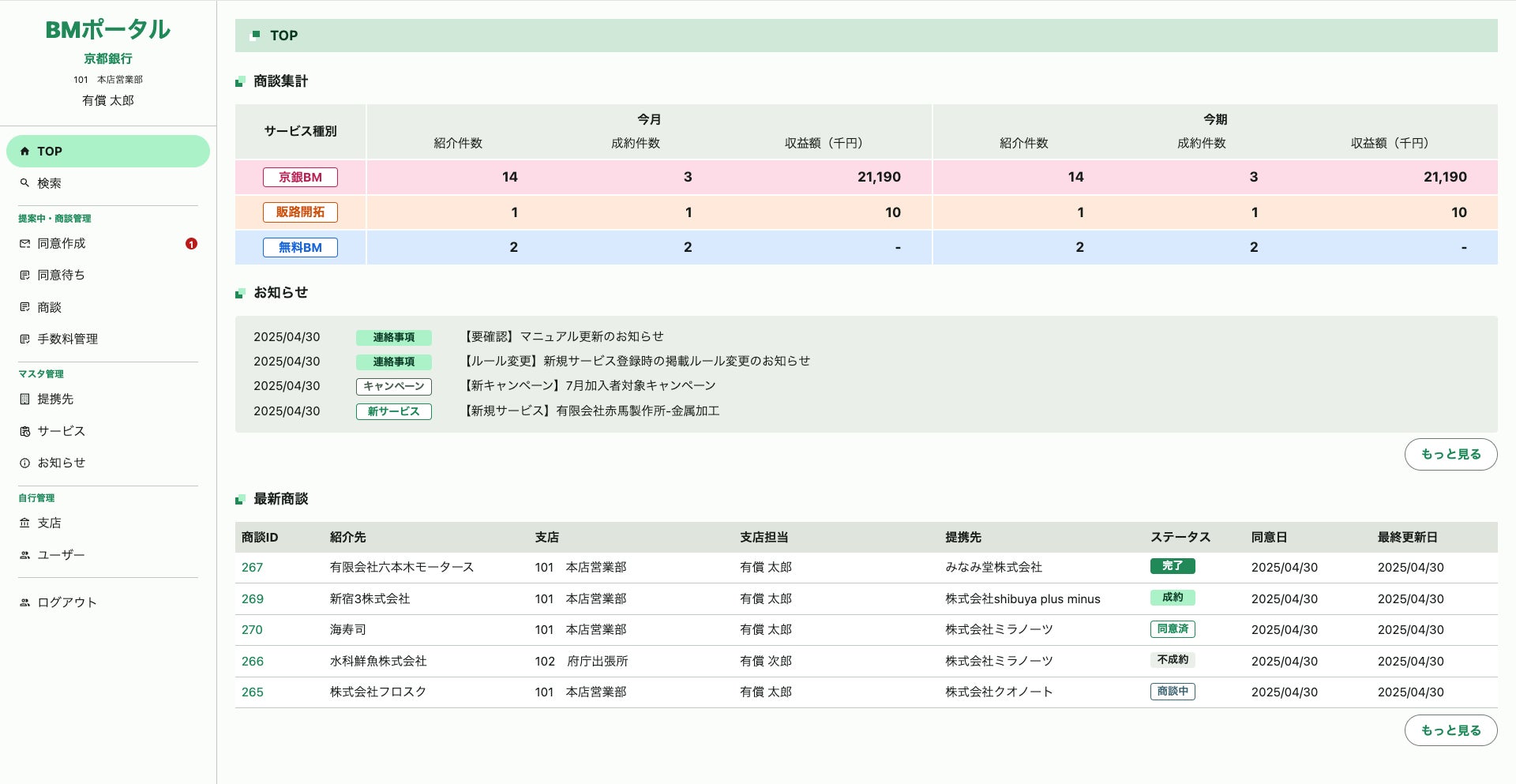 地域金融機関向けビジネスマッチング管理サービス「BMポータル」をリリース ―京都銀行が初導入―