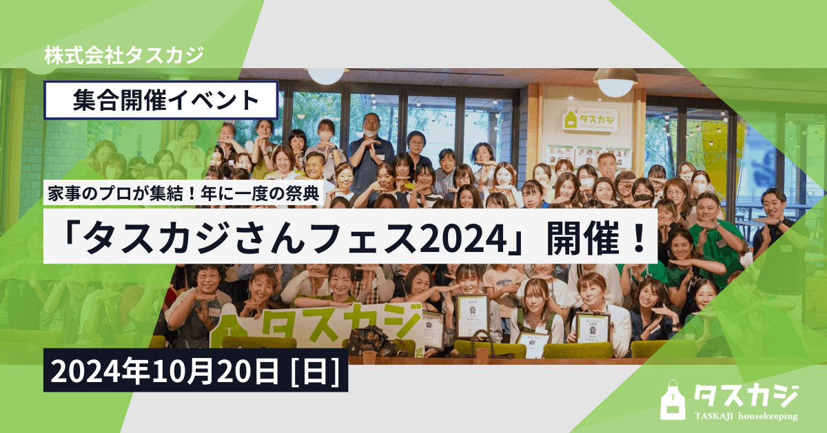 家事のプロ「タスカジさん」が集結する、年に1度の祭典「タスカジさんフェス2024」を、10/20(日) に開催!
