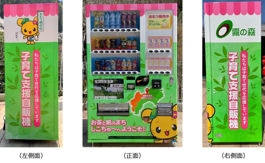 また、本自販機は、四国中央市子育て応援キャラクター「ほっこりん」のイラストを施すことで、お子様にも親しんでいただきやすいデザインとしており、飲料や紙おむつを購入する以外の楽しみも提供いたします。