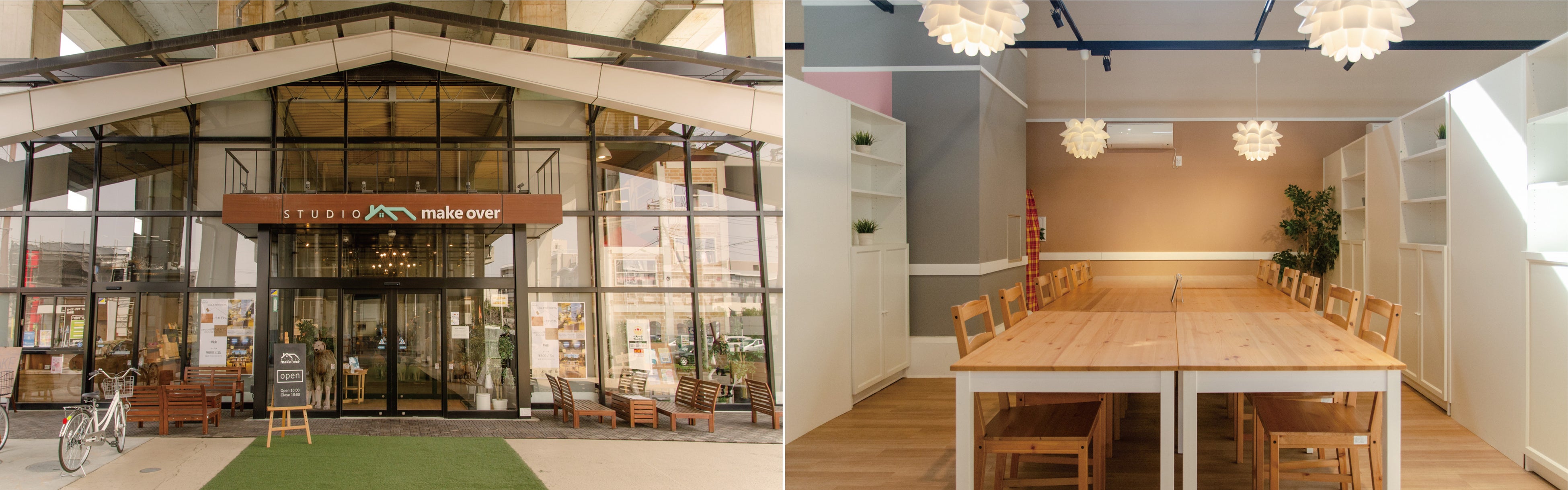 スタジオメイクオーバー武蔵浦和は「もうひとつのおうち」をコンセプトに、ジェイアール東日本都市開発が管理・運営するJR埼京線北戸田駅〜武蔵浦和駅間の高架下に開業したサードプレイス(※1)です。モノではなくコトでつながる次世代のコミュニティプレイスとして、様々な世代が集い楽しみ、そして時にはリラックス出来るような心地良さを提供しています。