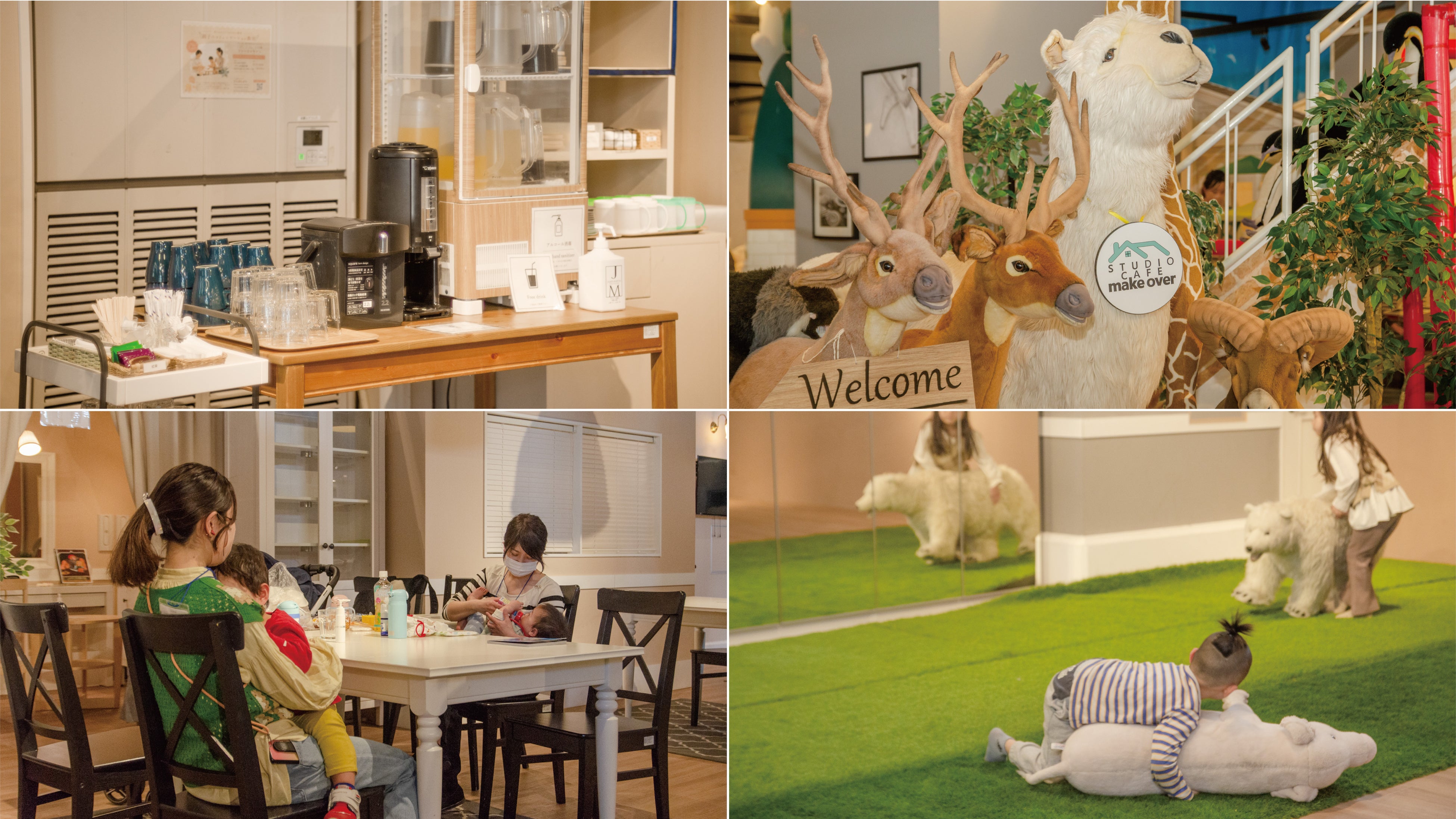 今回の連携により、インスタベースから簡単に、自宅以外の広々とした空間でお子さんや友人とプライベートな時間を満喫したり、オープンキッチンで料理をしながら趣味仲間や新しいグループとの交流をしたりと、幅広い用途でプライベートな時間を「スタジオメイクオーバー武蔵浦和」で楽しむことができます。施設内のドリンクバー、館内遊具、授乳室、ハイハイスペースなども利用可能です。