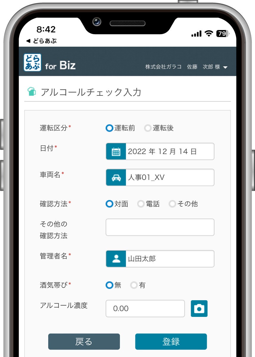 運転前後の酒気帯び確認記録は日々忘れないように、事業所で様々な工夫が施されているようですが、特に運転後の確認記録は業務に忙殺されていると記録を忘れてしまう可能性もあります。そうした問題を回避するために運転後の確認記録を促すプッシュ通知機能を新たに追加しました。