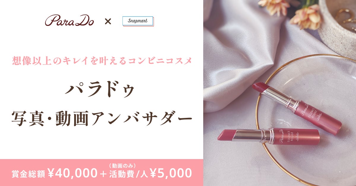 クリエイターとの共創を通じて企業のマーケティング課題を解決する、株式会社CREAVE(本社:東京都千代田区、代表取締役社長:中村真奈、以下 CREAVE)は、コスメブランド「パラドゥ」(パラドゥ株式会社)人気リップアイテムの写真&動画アンバサダーを5月22日(水)から募集します。
