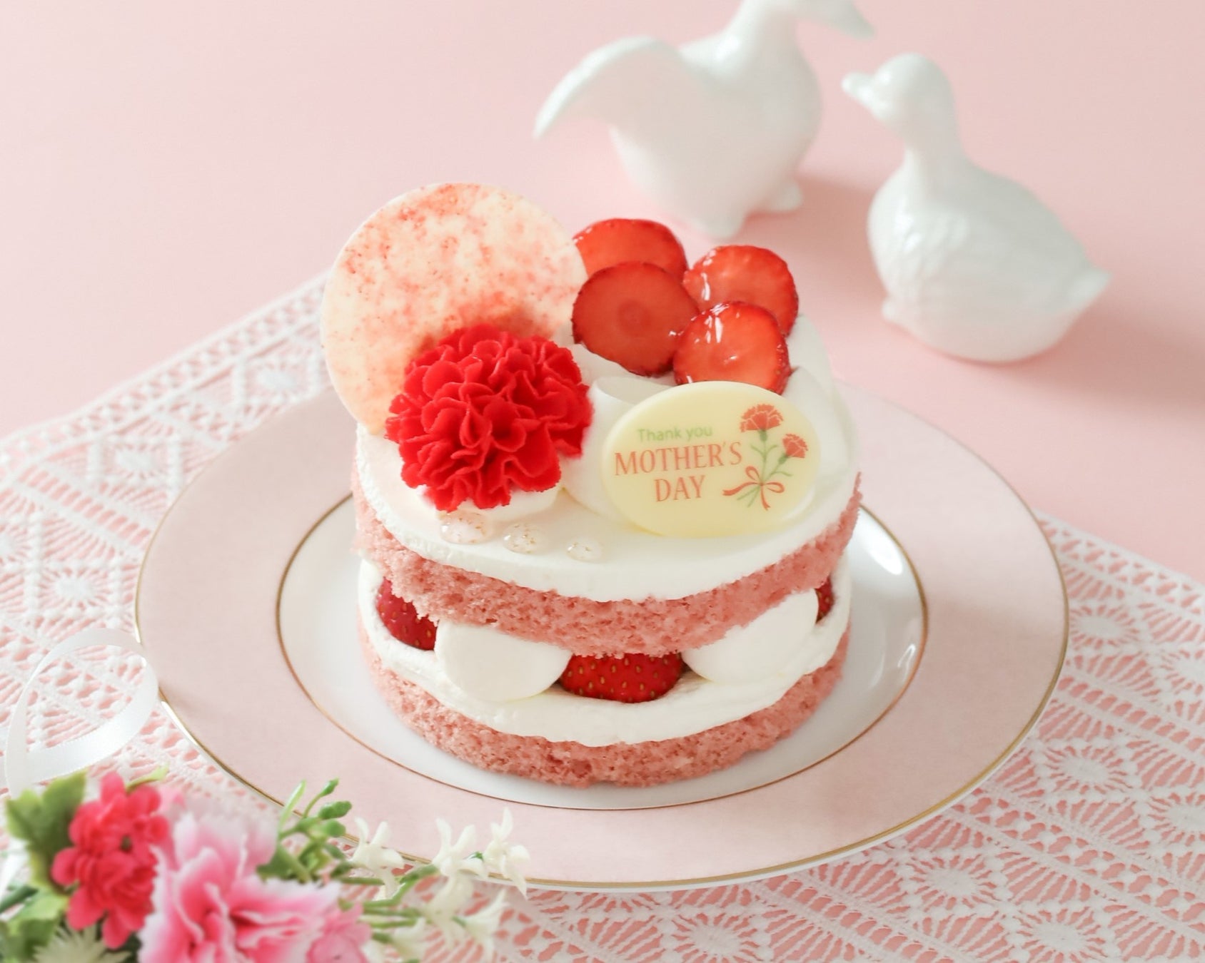 フランボワーズと苺のクリームで華やかにデコレーションした母の日を彩る特別なショートケーキ。
