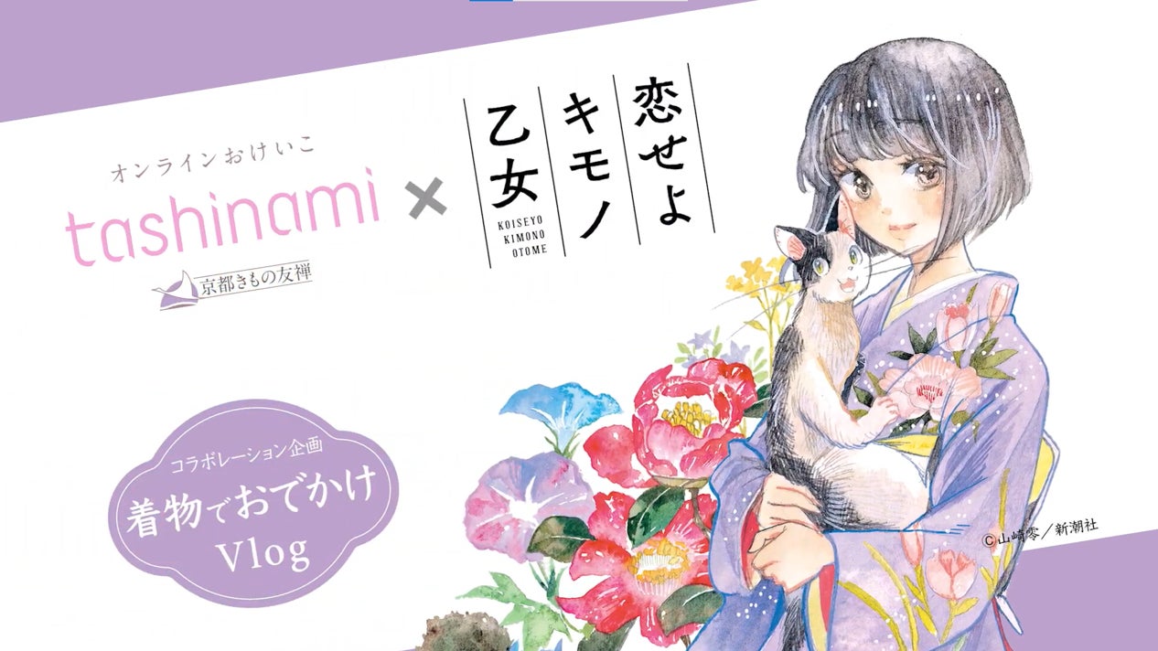 京都きもの友禅株式会社(本社:東京都中央区、代表取締役社長: 橋本和之、以下京都きもの友禅)が運営するオンラインおけいこ「tashinami」(タシナミ)は、株式会社新潮社が運営する WEB マンガサイト「くらげバンチ」で連載中の漫画『恋せよキモノ乙女』とのオリジナルコラボ浴衣製作に続く第2弾の特別コラボレーション企画として、作品のゆかりの地を着物で巡るスペシャルムービー「着物でおでかけVlog」を、2023年1月6日(金)より京都きもの友禅公式YouTubeチャンネルにて公開いたします。