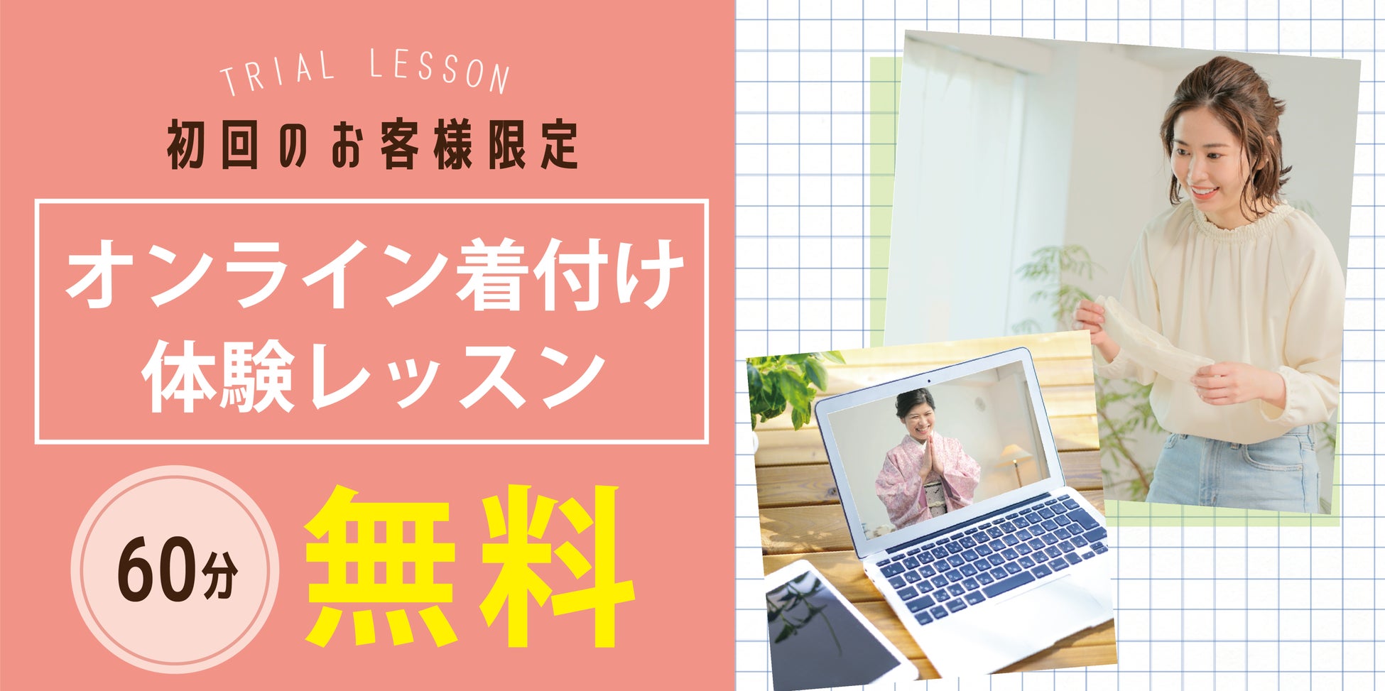 「着物初心者で何から始めていいかわからない」、「オンラインでのレッスンがどんなものか試してみたい」といった方におすすめの60分間の無料体験レッスンも開催しています。