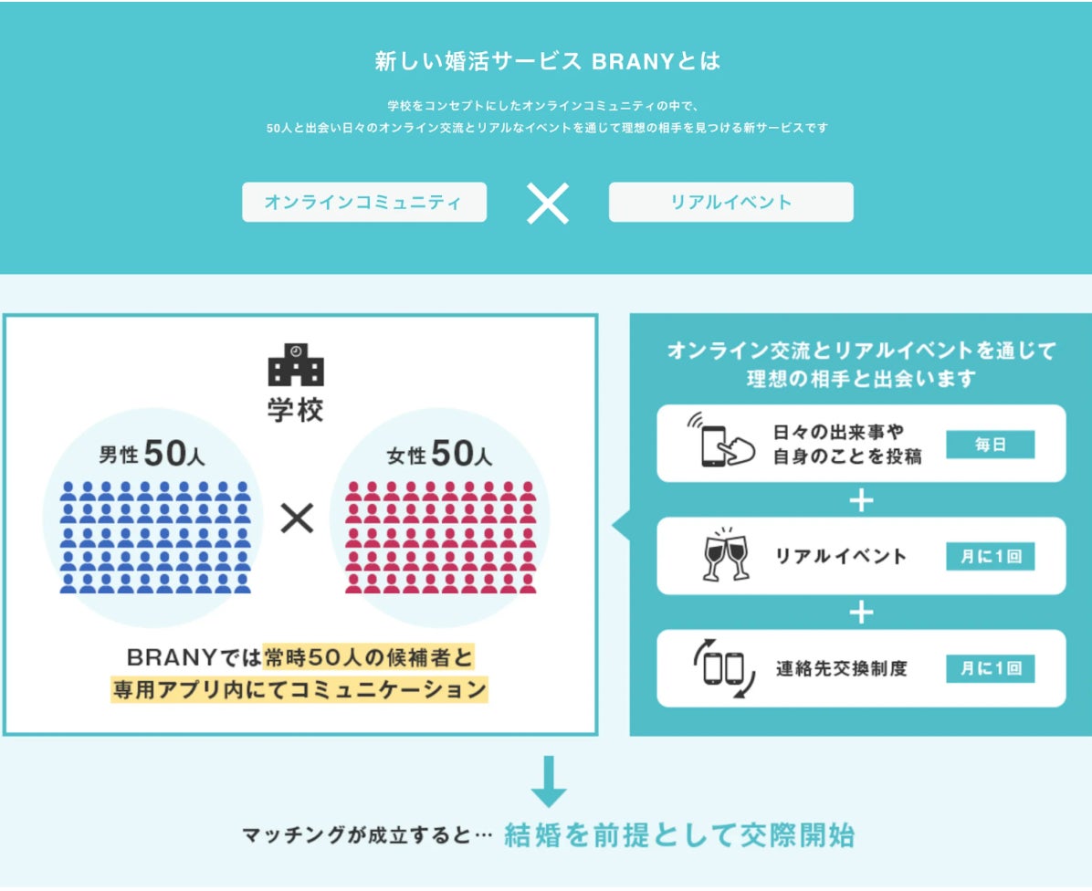株式会社スタメン(本社:愛知県名古屋市 代表取締役社長:加藤 厚史 以下、スタメン)が提供する学校をコンセプトにしたコミュニティ型の婚活サービス「BRANY(ブラニィ)」を2022年7月10日(日)にオープンすることが決まりましたので、お知らせいたします。※公式サイトはこちら(https://brany.jp/)