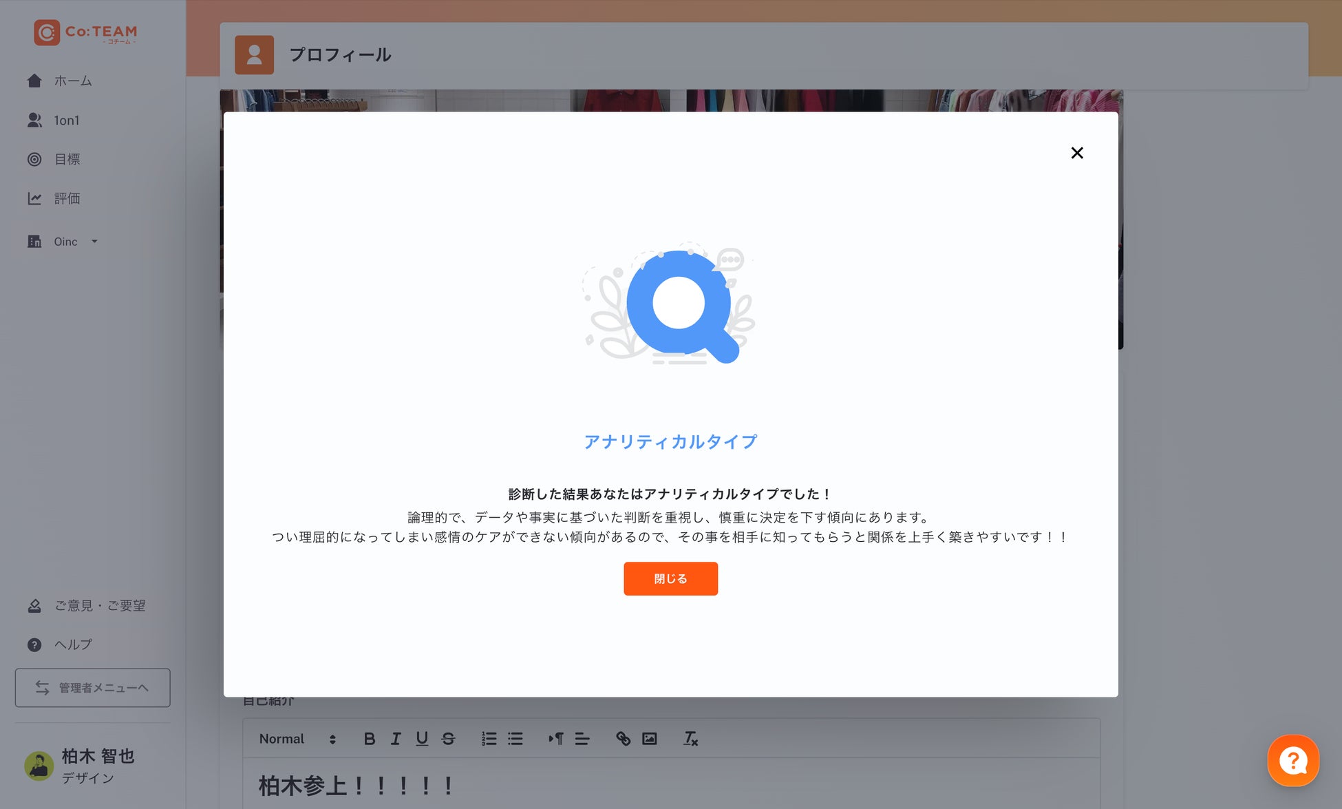 「AIアシスト機能」「ソーシャルスタイル診断機能」のご利用には、コチームのご契約が前提となります。本機能、ならびにコチームへのご興味がございましたら、以下のリンクから無料トライアルをお申し込みください。