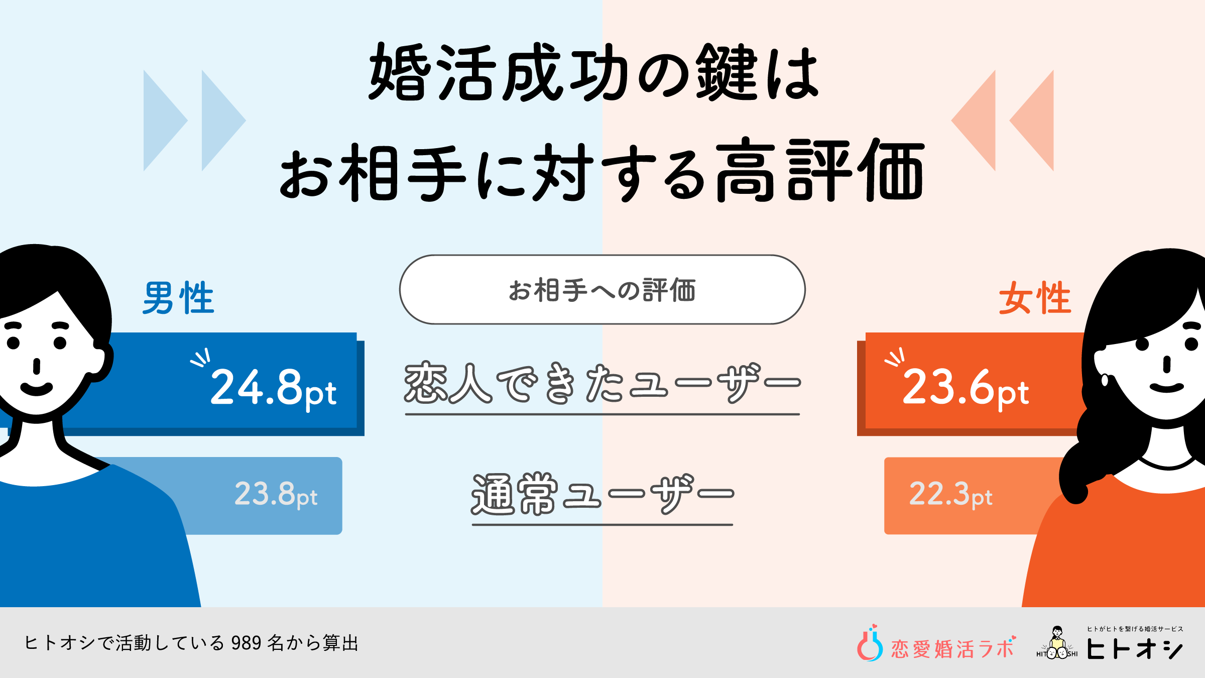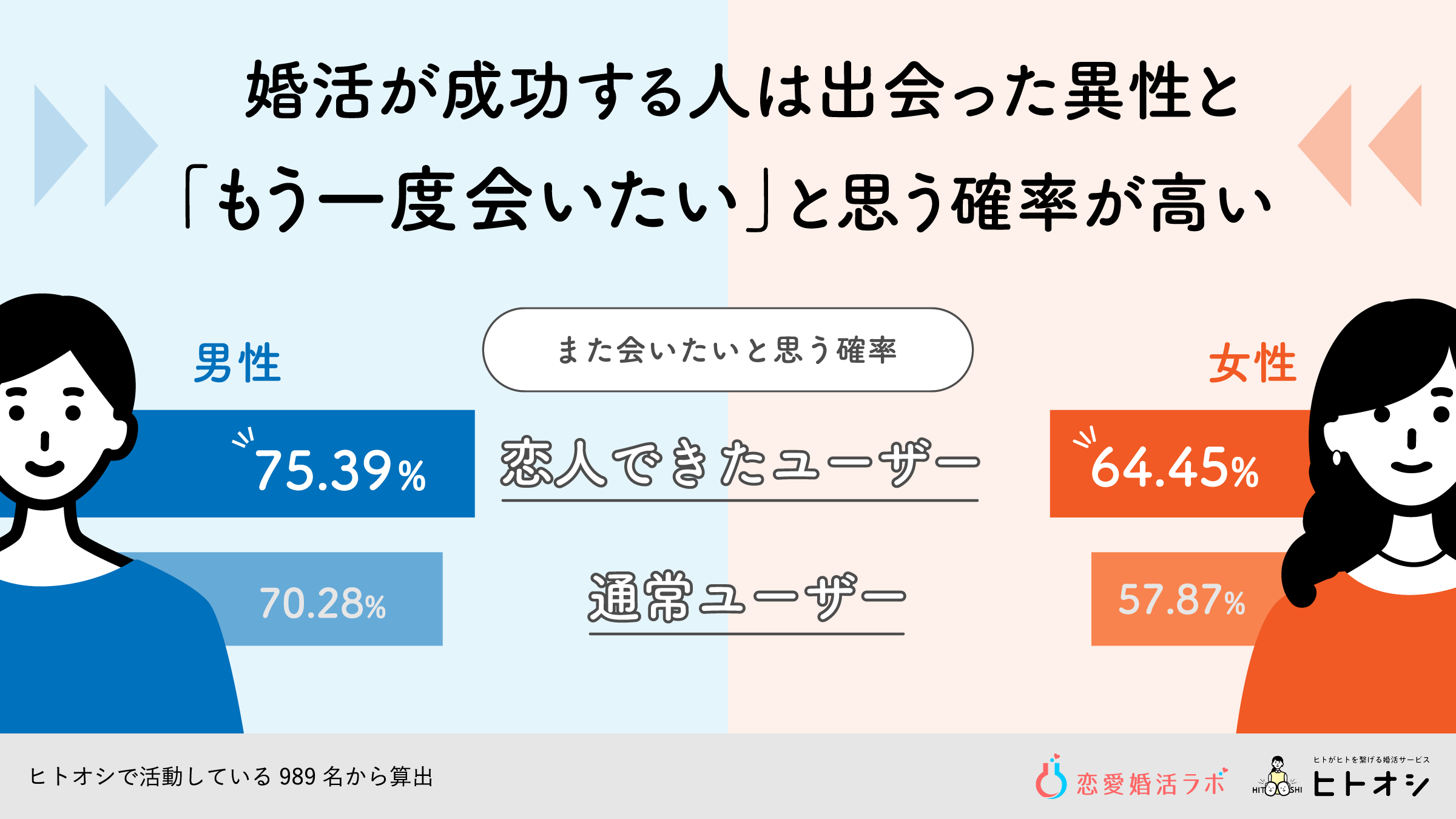 調査対象:パーソナライズ婚活サービス「ヒトオシ」ユーザーの顔合わせした989人