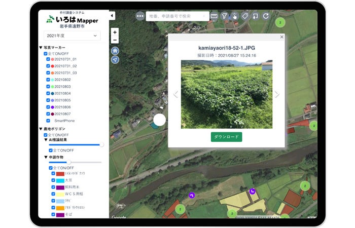 またスマホやタブレットで撮影した圃場の写真もドローン画像と同様にいろはMapperで一括管理・確認できます。