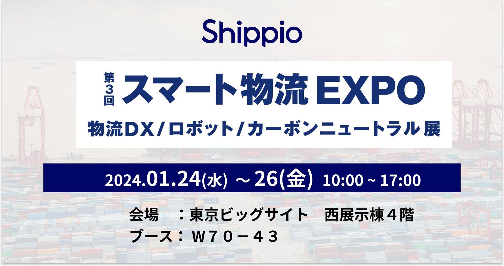 国際物流プラットフォーム「Shippio(シッピオ)」を提供する、株式会社Shippio(本社:東京都港区、代表取締役CEO:佐藤 孝徳、以下Shippio)は、2024年01月24日(水)~01月26日(金)に東京ビッグサイトで開催される「第3回スマート物流EXPO」へ出展いたします。