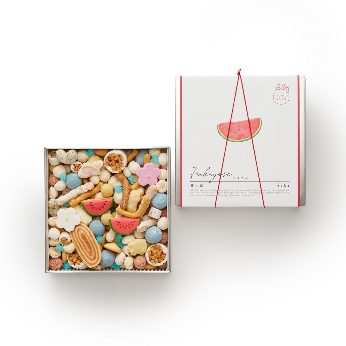 株式会社まるやが企画運営する和モダン和菓子ブランド【tamayose】は夏季限定商品「ふきよせ 甘い缶 Suika」「ふきよせ ミニボトル 金魚」を販売いたします。
