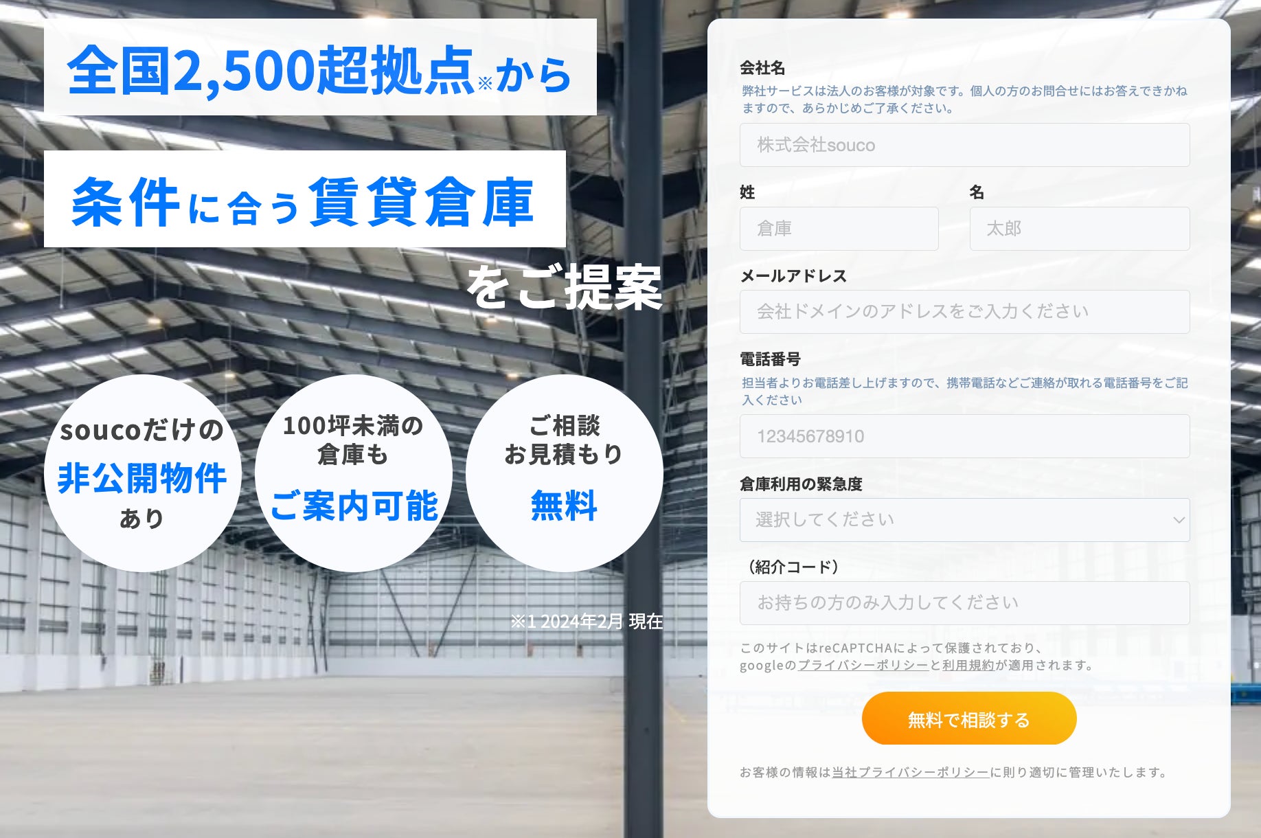 倉庫シェアリングのsouco、賃貸倉庫探しの新プランを提供〜全国2,500超拠点から100坪未満でも条件に合った倉庫をご提案〜